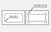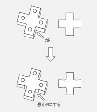 外側形状の隅部を角から最小Rにすることによって工程短縮できます。