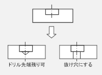 相手部分の当たりとしての面を確保したいだけであれば、ドリル穴残り可として図にその形状を明記することでコストダウンにつながります。