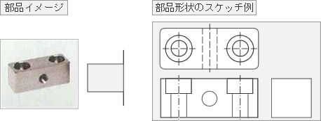 ※例えば下記のような部品の場合のスケッチ方法としては、正面・上面・側面がわかるようにご記入ください。